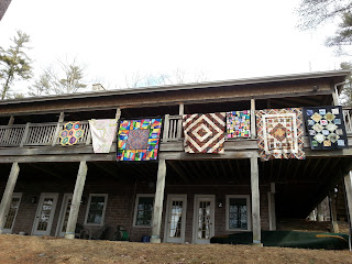 Here is the new Hill and Hollow block I made using a tan fabric so that the block looks less jarring with the other blocks. There are so many seams in this block that it came out a bit less than 12 1/2 inches. I hope I can stretch it just enough to fit when the time comes. I really don't want to do this again!